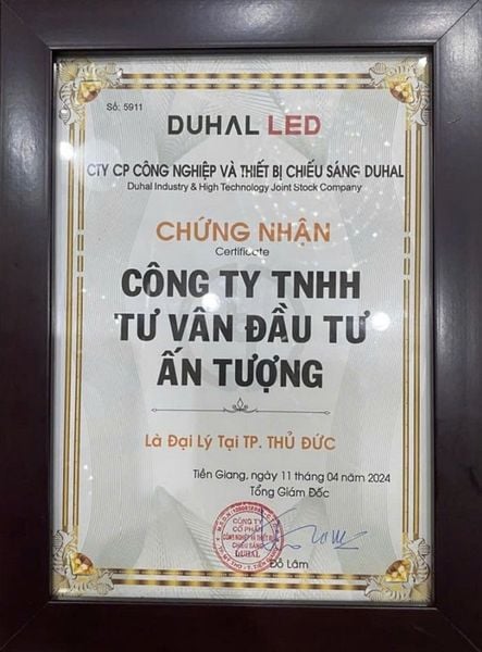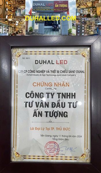 Chứng nhận Công Ty Ấn Tượng là đại lý chính thức phân phối tất cả các loại đèn DUHAL và thiết bị điện DUHAL